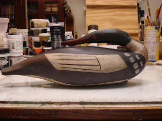 Well... I didn't think anyone read this... but I got a request to up date the blog.. (Rich)..Here is a Red Breasted Merganser that I finished.... made to look old .. simple carved bird and simple paint.. eyes are tacks... and there a dowel rod to support the bill...